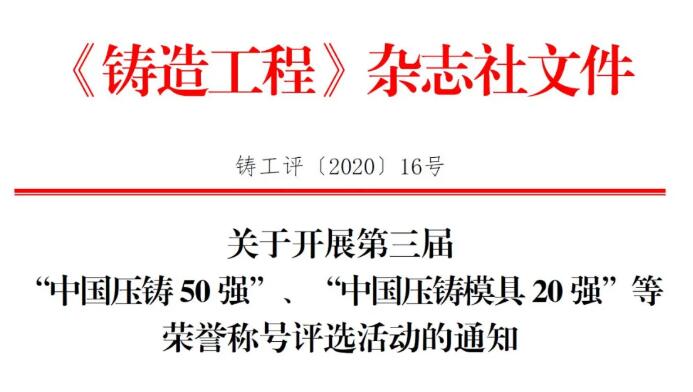 為展示壓鑄行業(yè)近幾年快速發(fā)展所取得的成績,提高優(yōu)秀壓鑄及壓鑄模具企業(yè)品牌影響力,“樹標(biāo)桿、引路徑”推動壓鑄行業(yè)健康發(fā)展,現(xiàn)正式啟動第三屆“中國壓鑄件生產(chǎn)企業(yè)綜合實力50強(qiáng)(簡稱中國壓鑄50強(qiáng))”、“中國壓鑄模具生產(chǎn)企業(yè)綜合實力20強(qiáng)(簡稱中國壓鑄模具20強(qiáng))”及“中國鑄造行業(yè)壓鑄件生產(chǎn)企業(yè)和中國鑄造行業(yè)壓鑄模具生產(chǎn)企業(yè)成長之星”評選活動。請年產(chǎn)值超過1.5億元人民幣的壓鑄件生產(chǎn)企業(yè)和年產(chǎn)值超過5000萬元人民幣的壓鑄模具生產(chǎn)企業(yè)踴躍報名參加。