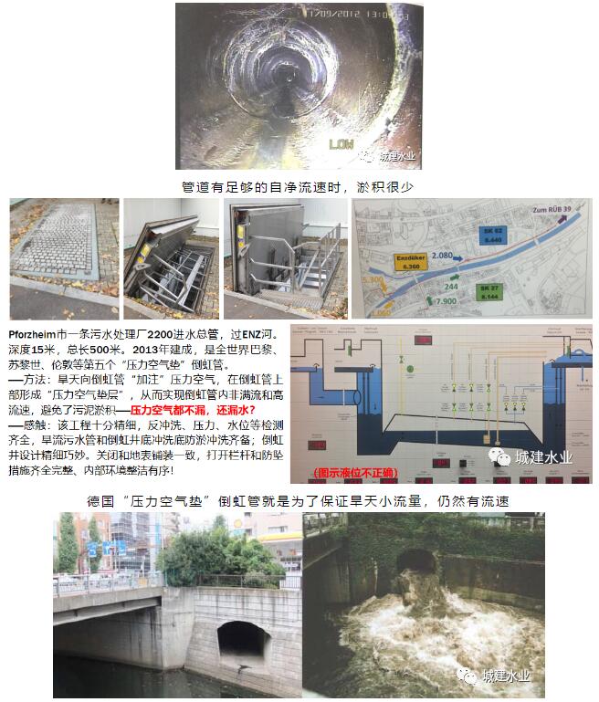排水管道設(shè)計(jì)一定是從末端向起端設(shè)計(jì)的,污水、雨水管道要與下游道路污水、雨水管相接、與泵站相接,雨水管甚至要直接接入水體。所以一定要搞清楚相接點(diǎn)基本設(shè)計(jì)要素,管徑、坡度、管底高程,更要對(duì)下游系統(tǒng)可否接入所設(shè)計(jì)管道的設(shè)計(jì)水量進(jìn)行必要的驗(yàn)算和復(fù)核,可不能夠把管子“一捅了之”。能否把大學(xué)排水工程課本里的“管頂平接”、“水面平接”應(yīng)用到實(shí)際情景中,就是基本功的體現(xiàn)。雨水直接排入水體,就一定要說清楚所排入的水體基本情況,如常水位、多年平均高水位、最高水位等。要提醒的是:保證“不淤流速”是排水管道設(shè)計(jì)的靈魂,一定要慎用“最小坡度”,特別是在按照遠(yuǎn)期流量設(shè)計(jì)時(shí),否則就要考慮沖淤措施。德國(guó)“壓力空氣墊”的倒虹管就是案例。自流雨水排水口一定要在常水位以上,一定要避免淹沒出流,否則設(shè)計(jì)的就不是滿管重力流,設(shè)計(jì)方法就錯(cuò)了。